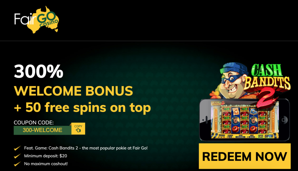 Fair Go Casino – 50 Free Spins + 300% Bonus
